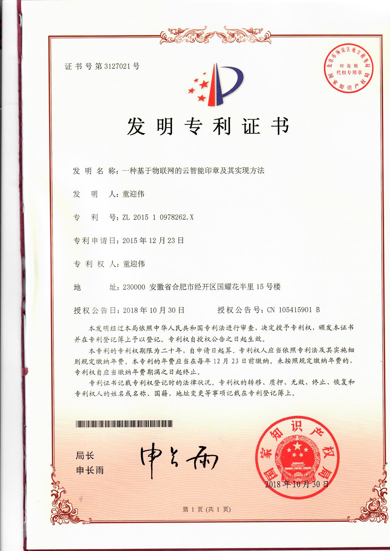 公司原創發明一體式智能印章技術,引領國內外新一代智能印簽創新變革。獲中日韓多項發明專利,徹底解決了實體印章和電子印簽管控的社會難題,獲國務院國資委全國央企熠星二等獎。公司聯合國家信息安全產品認證中心、公安部三所、信通院、中國印章協會等,主導起草了行業首個智能印章安全認證標準和智能印章產品標準,引領了智能印章行業發展。